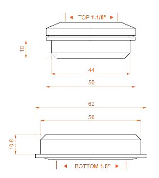 - Посадочное место верхней чашки: 44 мм