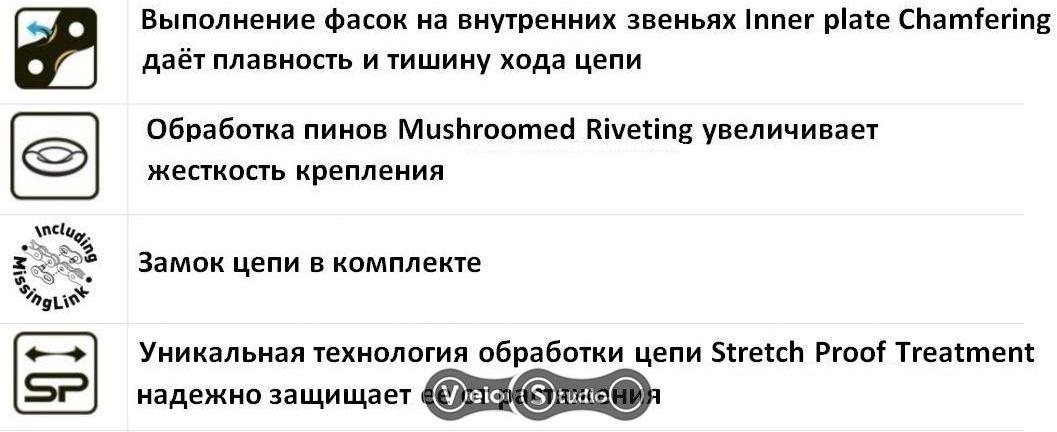 Ланцюг додатково оброблений для захисту від корозії. Спробуйте оцінити нову якість кіл KMC. Чудове поєднання якості матеріалу, виготовлення та низької ціни.