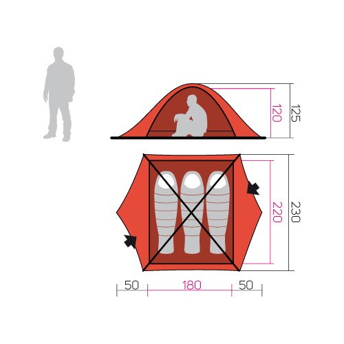 - Розмір внутрішнього намету: 2200 х 1800 х 1200 (ДхШхВ)
